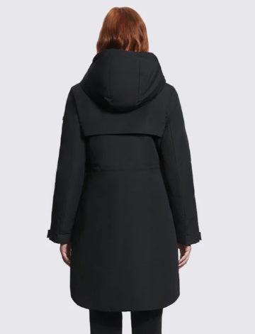 Designed to provide warmth down to -35 °C (-31 °F), the MONACO is an eco-responsible coat with its recycled insulation. The coat has a below-the-knee length, with an adjustable and removable hooded collar, and storm cuffs. This style is essential for cold weather with its water-repellent fabric for a fashionable and functional winter experience.